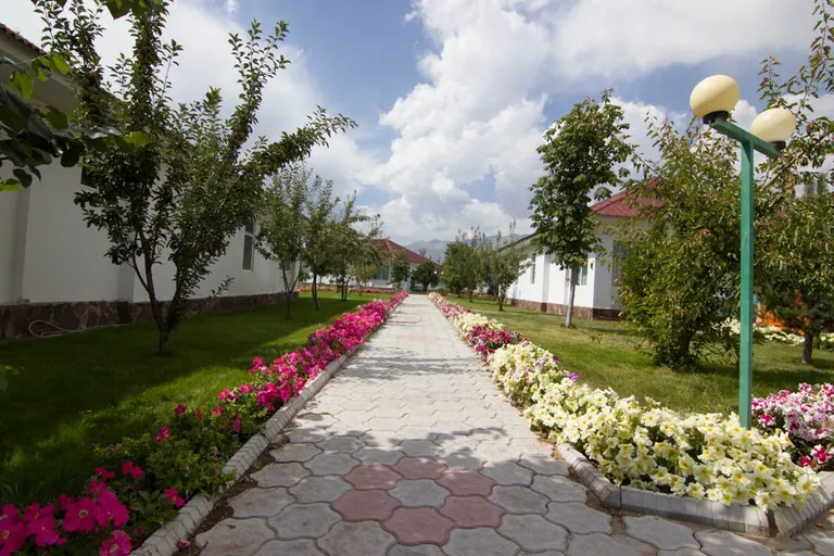 Пансионат Сайран небольшой и уютный, зелёная, ухоженая территория. Рассчитан на 150 человек. Размещение в корпусе и коттеджах, в номерах со всеми удобствами.