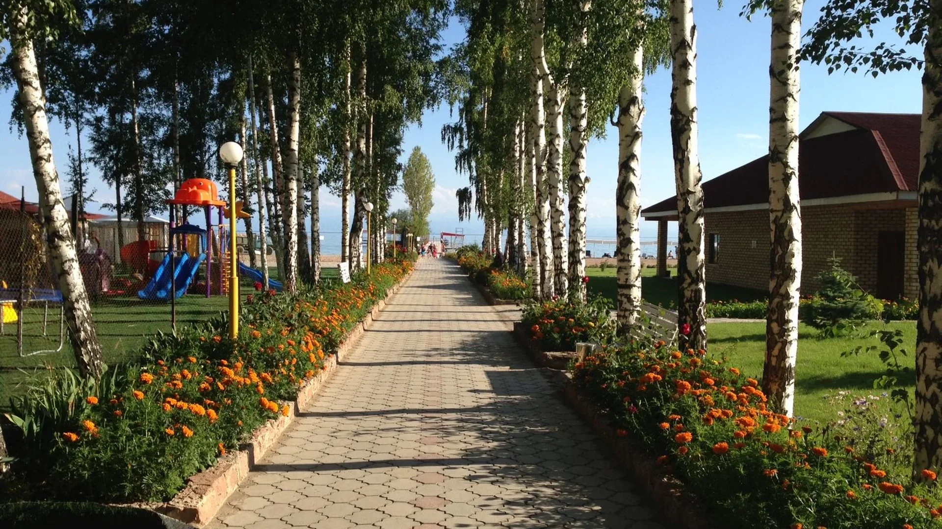 - вход в воду илистый пирс с лестницами для спуска в воду шезлонги и зонтики водные горки площадки для пляжного волейбола и футбола